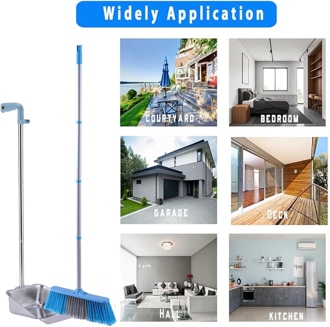 - Widely Used: The floor cleaning broom and heavy duty dustpans set is great for indoor and outdoor use, sweeping home/house like kitchen, lobby, bedroom, garage, patio and balcony