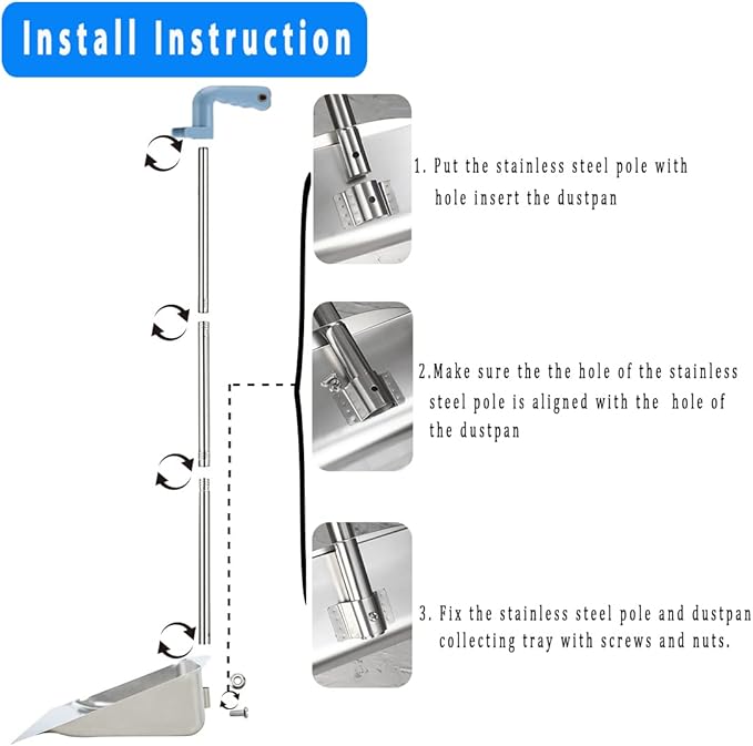 - Metal Stainless Steel Material: The stainless steel dust pan is better than plastic dust pan, metal material is more durable and has longer service life for daily use, also the edge doesn't chip or bend while using