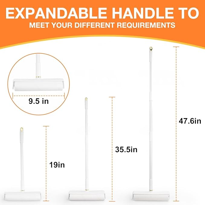 LINSIRON Large Lint Roller Pet Hair Remover 270 Adhesive Sheets Rollers 9.45 Extra Sticky Dog Cat Adjustable Handle 7.9-47.6 Inch, 3 Replaceable Rolls 90 Sheets Each, 3 Extension Rods for 4 Heights
