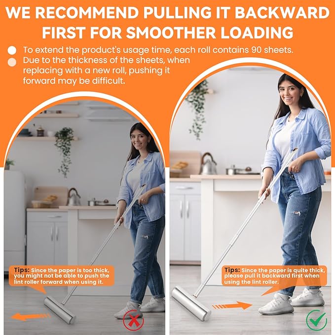 - 9.6-INCH WIDE DESIGN & 270-SHEET VALUE:Maximize cleaning coverage with our 9.6-inch wide adhesive roller. Its substantial width tackles expansive floors, carpets, and furniture effectively. Includes 3 refill rolls offering 270 extra-sticky sheets (90 sheets per roll) for extended use. Ideal for busy homes and pet owners managing shedding, this design helps streamline cleaning time. The included refills provide substantial value, meeting regular cleaning requirements.